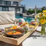 În fiecare zi este oferit un mic dejun continental. Oaspeții se pot bucura, de asemenea, de mâncăruri din bucătăria Turkse la Ruzgaralti Alacati Kahvalti Evi, situat aproape de Enki Suess.